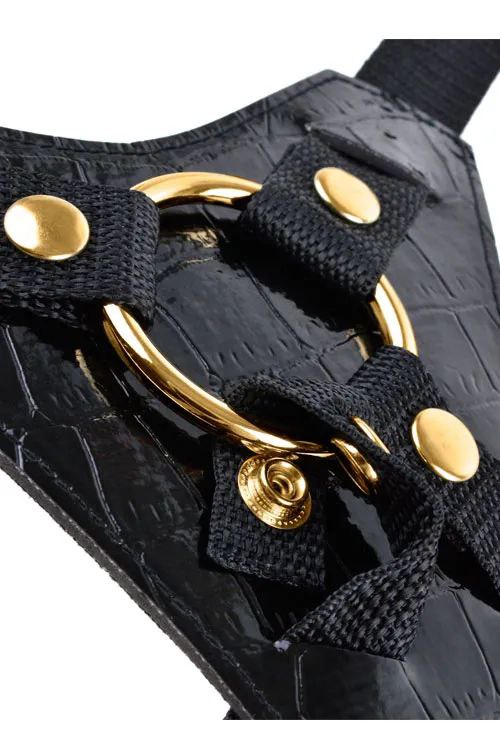 Hit the right spot every time with this elegant fetish fantasy gold strap-on.