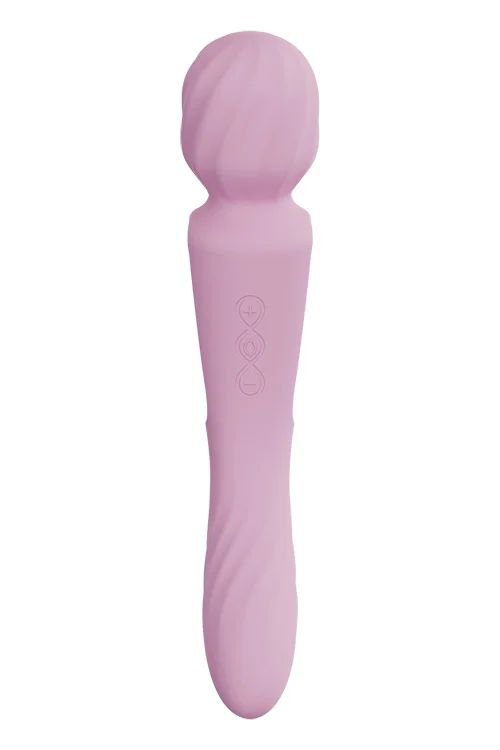 - Dual-ended wand: broad external head + textured insertable tail