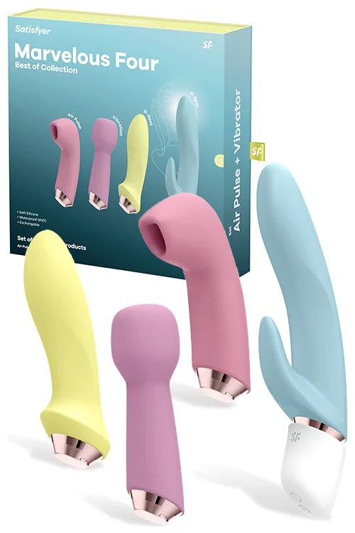 Switch up your pleasure instantly. Grab the Satisfyer Marvelous Four Vibrator. This multifunction set tickles every fancy with four interchangeable heads. One rechargeable base powers them all. Save on storage, cost, and the environment. You get a rabbit for dual clitoral and G-spot bliss. A curved attachment targets anal or G-spot perfectly. An Air Pulse head delivers clitoral pressure waves. A wand massager covers external hot spots.